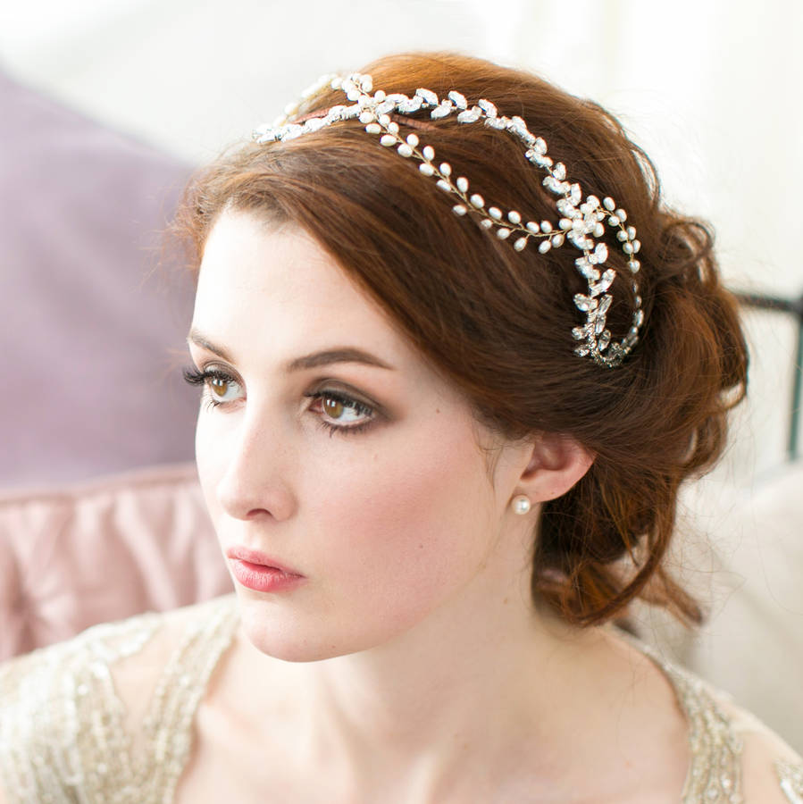 SOMERSET | Delicate floral bridal headpiece - Tania Maras from www.taniamaras.com Whimsical fairytale bohemian bridal headpiece pearl blooms with swarovski crystal centres sit amongst delicate tendrils of pearl and crystal, accented with scattered pearl floral hairpins. This is the image you have always wanted to portray at your wedding, isn't it? 24 celestial bridal headpieces and hairpieces. Custom crystal headpiece and earrings by bridal styles boutique. What are the current trends for bridal headpieces? From delicate floral headbands to upcycled bridal headpieces. By wearing the headpiece like tiara, veil or crown, the bride emphasizes the importance of her role on this important day. This beautiful vintage inspired veil is the perfect accessory for a wedding.•••filming equ.